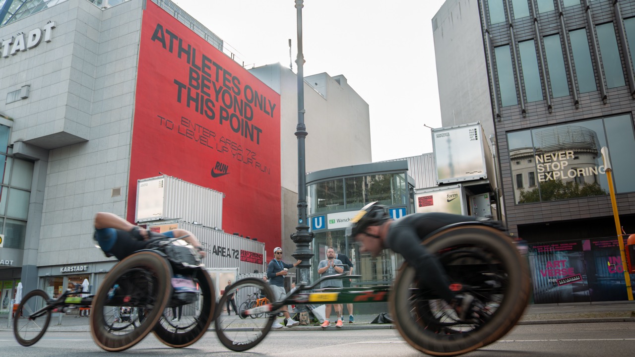 The finished mural makes a clear statement: “Athletes Only Beyond This Point.” A message that doesn't need to be explained, but simply has an impact. Placed in a monumental location, perfectly embedded along the route of the 2025 Berlin Marathon and visible around the clock – a visual marker for everything that is to come.